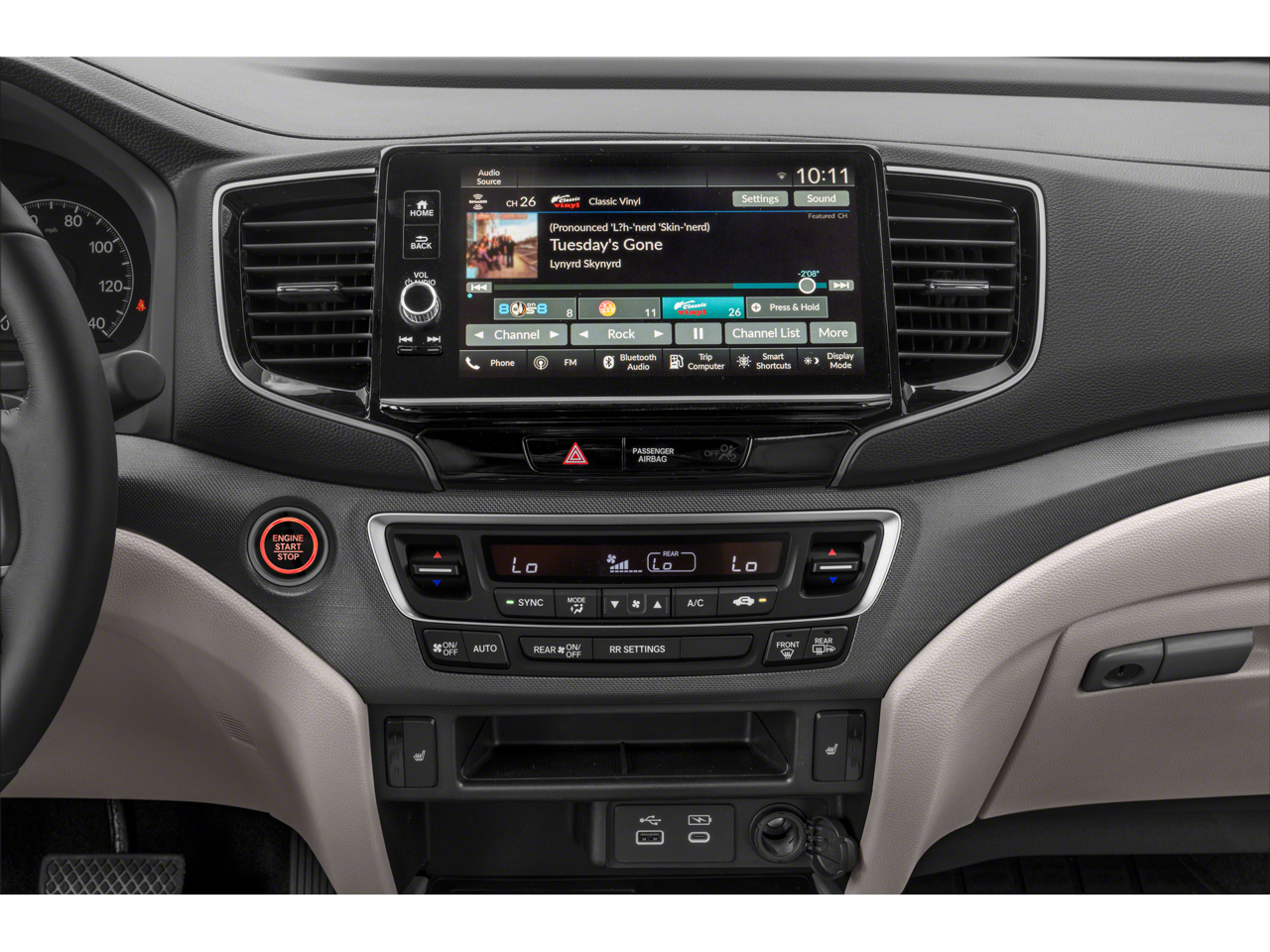 - Radio: 215-Watt Audio System w/7 Speakers -inc: subwoofer, 9" color touchscreen, Bluetooth® streaming audio, Speed-Sensitive Volume Compensation (SVC), wireless Apple CarPlay/Android Auto compatibility, 2.5A USB-A data port in front console, 3.0A USB-C charging port in front console and HondaLink